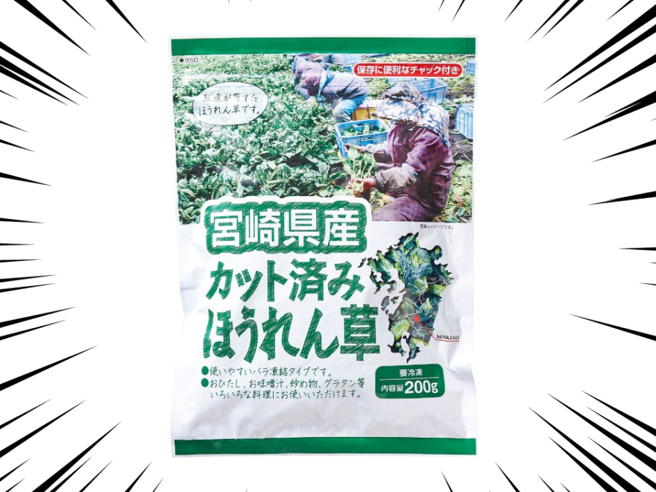 ほうれん草、生だと洗うのも大変です。カット済だし、そのまま使えてめちゃくちゃ楽だわ!