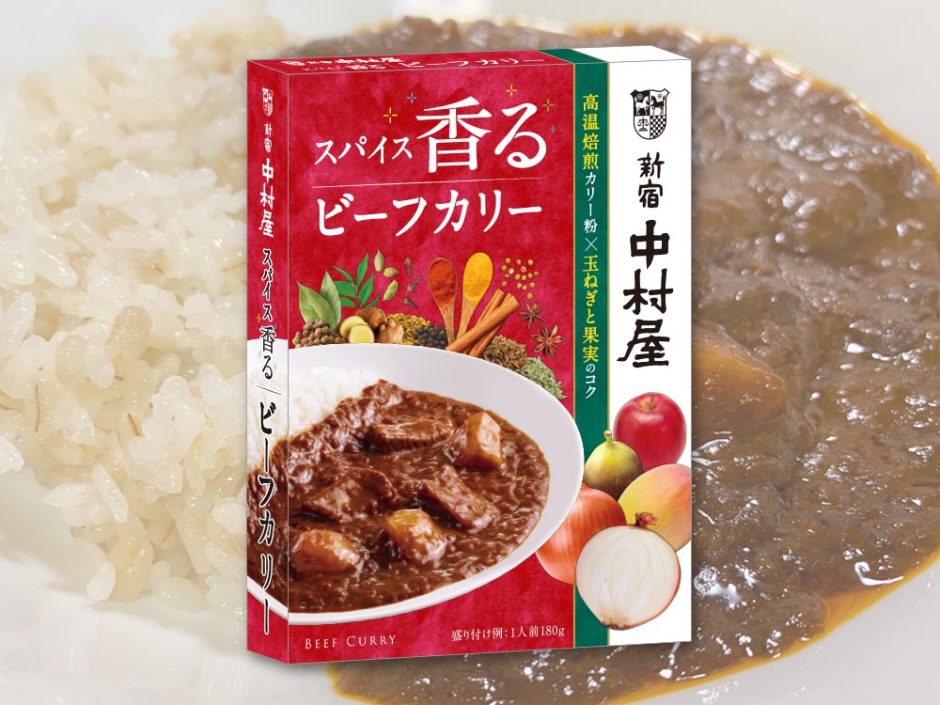 「ビーフカリーもチキンカリー同様、本格スパイスの香り豊かな味わいを、お家で手軽に楽しめるカレーです。中村屋さんこだわりのスパイス&ハーブを30種類使っていますよ」とニコニコの柴田。