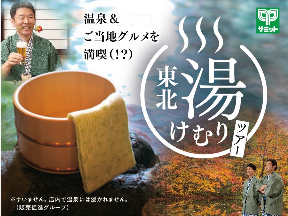 いかがでしたか?サミットが東北の魅力を余すとこなくお届けする『東北湯けむりツアー』。残念ながらサミット店内では温泉に浸かれませんが、東北の名湯の入浴剤なども販売していますので、自宅で東北の温泉気分を感じながら、おいしい東北グルメを食べて、東北旅行気分を満喫してください♪